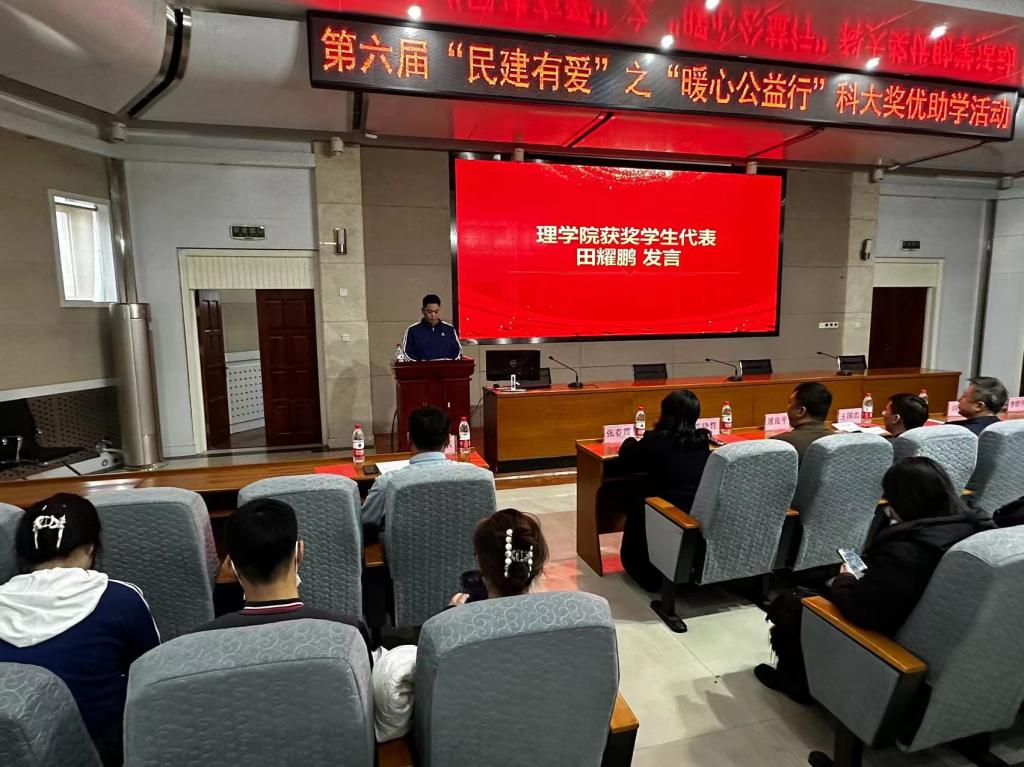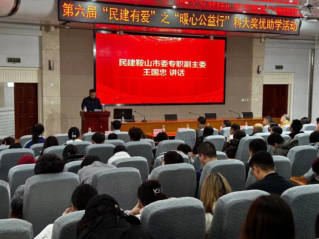 12月6日,第六届“民建有爱”之“暖心公益行”助学活动在易游图书馆报告厅举行。活动由理学院党委书记张春霞主持,民建鞍山市委员会领导及各支部成员、校党委统战部、理学院和艺术学院师生代表参加。