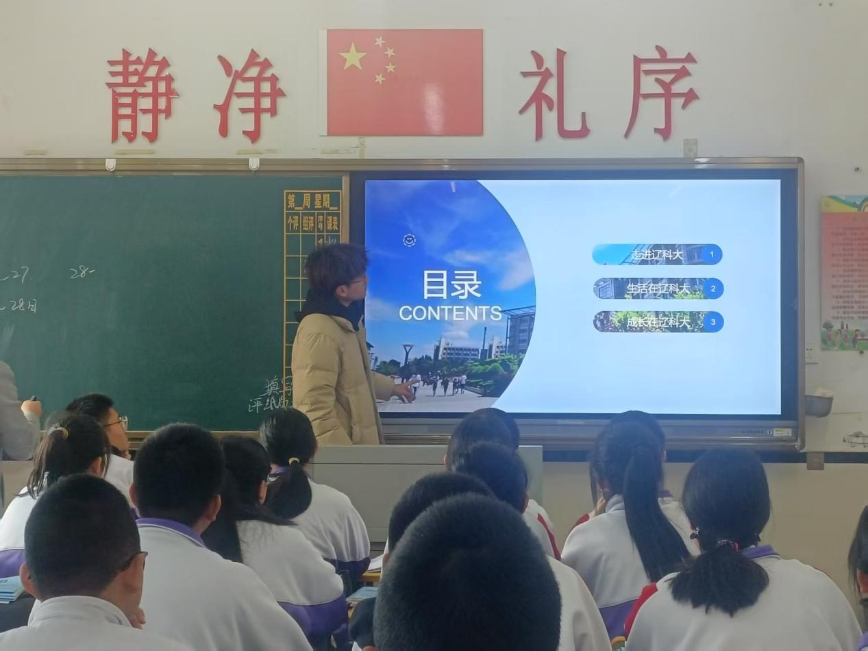 活动期间,四位同学在各自母校老师的热情协助下,精心筹备了一系列内容翔实、形式多样的宣讲活动。他们不仅详细介绍了各自所在大学的学习环境,包括图书馆资源、实验室设施、学术讲座与科研项目等,让学弟学妹们对高等教育的广阔天地有了更加直观的认识,还生动描绘了大学的生活场景,从丰富多彩的社团活动到温馨和谐的宿舍文化,每一个细节都旨在激发同学们对大学生活的无限憧憬。