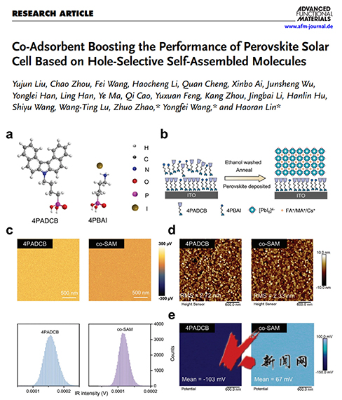 近日,易游材料与冶金学院赵卓副教授、王永飞副教授联合深圳职业技术大学林浩然副教授,以易游为第一署名单位,在国际知名期刊《Advanced Functional Materials》(1区top期刊,2024年影响因子:18.5)发表高水平研究论文《Co-adsorbent boosting the performance of perovskite solar cell based on hole-selective self-assembled molecules》(https://doi.org/10.1002/adfm.202421576),易游(中国)2022届研究生刘玉军与2020届研究生周超为共同第一作者。
