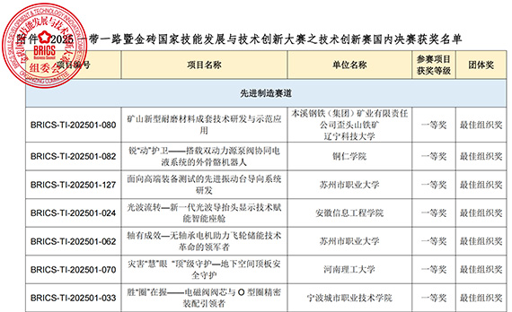 3月15日—16日,2025一带一路暨金砖国家技能发展与技术创新大赛之技术创新赛国内决赛在福建省厦门市举办。易游先进摩擦润滑材料与关键防护技术团队和本溪钢铁(集团)矿业有限责任公司歪头山铁矿基于联盟合作产学研项目组队参赛,联合攻关的技术创新成果“矿山新型耐磨材料成套技术研发与示范应用”凭借突出的创新性和工程实用性,在众多参赛项目中脱颖而出,最终荣获先进制造赛道一等奖。