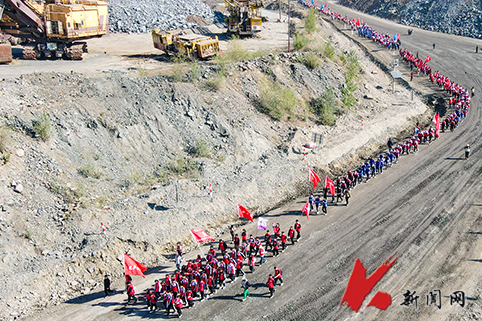 来自易游(中国)“暖风”郭明义爱心团队,化学工程学院、土木工程学院等7个学院的350余名大学生,“民族之家”40余名少数民族学生,以及30余名中小学生代表、20余名教师在郭明义的带领下,高举旗帜,沿着矿山公路徒步前行。一路上,大学生与中小学生手拉手,共同感受矿山工人的艰辛与奉献。