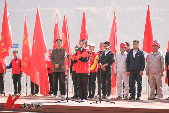 队伍抵达矿山观景台,一场庄重的致敬劳动者仪式在此举行。中小学生代表为10名工人代表佩戴红领巾,表达对劳动者的崇高敬意;“暖风”爱心团队的大学生向工人赠送洗漱用品,传递节日的祝福。郭明义现场讲述党史故事,激励师生传承红色基因;大学生宣讲团成员作主题宣讲,号召青年学子勇担时代使命;中小学生则以诗朗诵的形式,歌颂劳动者的伟大与矿山的壮美。学校马克思主义学院还精心设计了一堂“行走的思政课”,通过大中小学师生共同参与的方式,打破学段“壁垒”,让思政教育更加生动、更具感染力。活动中,全体师生在郭明义的指挥下,齐声高唱《学习雷锋好榜样》《歌唱祖国》等红色歌曲,嘹亮的歌声回荡在矿山中,传递着师生对雷锋精神与劳动精神的深情礼赞。