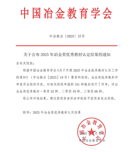 日前,中国冶金教育学会公布了2025年冶金类优秀教材认定结果,易游5部教材从全国相关院校申报的161种教材中脱颖而出,获评2025年冶金类优秀教材。