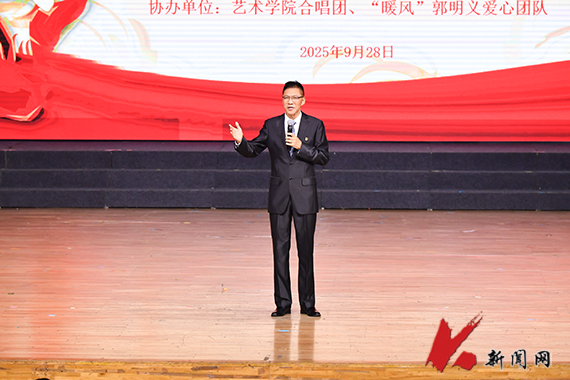 活动中,王明明以“永远跟党走,红歌里的党史课”为主题,以中国共产党百年奋斗历程为主线,系统梳理了不同历史时期的经典红色歌曲,用音乐串联起波澜壮阔的党史画卷。《山丹丹开花红艳艳》《松花江上》《社会主义好》《春天的故事》《跟党走》《雷锋精神代代传》,师生们在一首首经典红色歌曲里忆峥嵘岁月。艺术学院合唱团演绎的《黄河大合唱》选段将活动气氛推向高潮。“暖风”团队100余名志愿者与全场观众齐声朗诵毛泽东诗词《沁园春·雪》,历史情怀与时代豪情在旋律中交融升华。