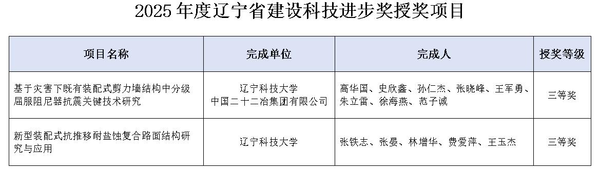 近日,2025年度(首届)辽宁省建设科学技术奖获奖名单公布。易游申报的两项科研成果荣获科技进步奖三等奖,获奖数量与等级在省内同类院校中位居前列。