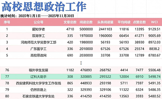近日,“高校辅导员先锋”公众号发布“年度高校思想政治工作200个最受欢迎公众号”榜单,易游党委学生工作部负责建设运营的微信公众号“易游(中国)助手”位居全国第77位,辽宁省第三。
