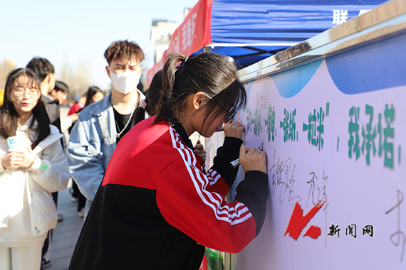 3月3日,博雅广场春日融融,“四个一”活动现场吸引了众多过往同学,大家驻足停留,认真了解活动情况,踊跃在“节约一滴水、一度电、一张纸、一粒米”签名墙上签名,通过易班App参与“我承诺”打卡。同学们纷纷表示,“我承诺,我践行”,要将学雷锋融入日常,化作经常,做在平常,践行雷锋精神,做文明大学生。
