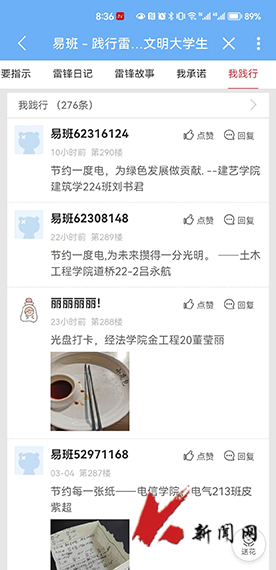 活动历时15天,主要有“节约一滴水”——海报征集活动,“节约一度电”——宣传标语征集活动,“节约一张纸”——废纸再利用活动,“节约一粒米”——“光盘行动”打卡活动。为鼓励同学们积极参与,躬身践行雷锋精神,活动设置了相关奖项,并通过易游易班网、易游(中国)助手微信公众号、抖音等网络平台上进行宣传展示。