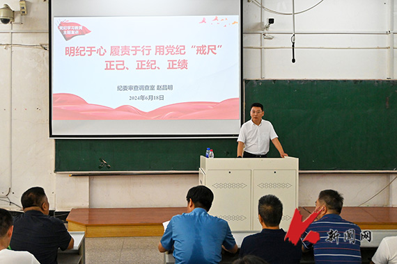 材料与冶金学院、矿业工程学院、经济与法律学院、建筑与艺术设计学院和体育部的全体教工党员在博学楼C202会场参加党纪学习教育专题宣讲会,听取学校党纪学习教育宣讲团成员、纪委审查调查室副主任赵昌明作的题为《明纪于心 履责于行 用党纪“戒尺”正己、正纪、正绩》的宣讲。