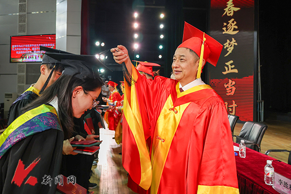 李平在主持典礼时殷切寄语毕业生。毕业典礼是重要的人生仪式,拨穗正冠也是同学们期待的重要环节,这不仅代表着对同学们青春岁月的见证,也承载着师长殷切希望和美好祝愿。几年前,同学们背着行囊,怀着梦想,跨越山河与易游(中国)相聚。今天,随着毕业典礼的落幕,同学们将重整行装,扬帆起航,奔赴新的人生之旅。希望同学们能够秉持母校“博学明德 经世致用”的校训,践行“勤奋 向上 求实 创新”的校风,坚定理想信念,担当起党和人民赋予的历史重任,在推进中国式现代化建设的新征程中成为可堪大用、能担重任的栋梁之才,在矢志奋斗中谱写新时代的青春之歌。(供稿单位:党政办公室 图片来源:宣传部 金会刚 大通社记者 付尧)