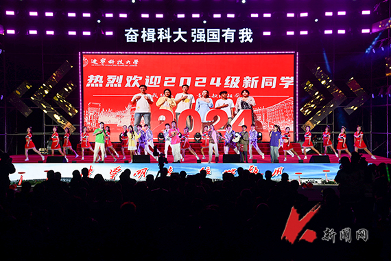 文艺晚会主题为“奋楫科大·强国有我”,分为“炫舞青春”和“燃梦未来”两个篇章。在激动人心的倒计时和炫彩灯光秀后,研究生、留学生、藏族学生代表和校彩虹啦啦操队一同登台,伴随着悦动的旋律,歌舞《让我们一起出发》尽显易游(中国)学子的青春活力风采;曲艺说唱《这一方热土》,唱出了鞍山的厚重历史、地域文化和钢铁特色,描绘出了易游(中国)人接续奋斗、为国奉献钢筋铁骨的生动画卷;由博士教师组合演唱的歌曲《天地龙鳞》雄浑豪迈、大气磅礴,唱出了中华民族自强不屈的精神血脉,更唱出了新时代中华儿女奋力推进强国建设、民族复兴伟业的坚强意志和美好愿望;创意表演《沧海一声笑》,融合戏曲、武术、说唱元素,让人耳目一新;由经法学院新生刘舒扬及家长演唱的歌曲《花开忘忧》唱出了母爱的无私伟大,也用歌声代表2024级新生为身在远方的父母送去了惦念和祝愿;街舞《青春未来式》节奏动感、张力十足;国风歌舞《昨夜小楼又东风》如诗如画,尽显国风之美;由筑梦合唱团和军训教官表演的《强国有我》激情澎湃,青春热血;相声《大风车》带领2024级新生秒回童年,现场笑声掌声此起彼伏。