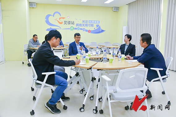 孟劲松、孙晓华一行参观了大学生心理健康教育服务中心,深入了解了学校学生心理健康教育服务及咨询、预防干预等工作情况,并与心理健康教育教师进行了亲切交流。