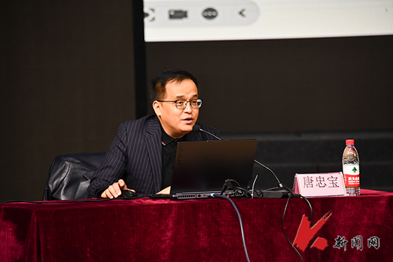 报告中,唐忠宝从“历史观、民主观、价值观”三个方面,通过生动的语言,结合党史、社会热点问题、哲学观点等案例,逻辑清晰地讲述了如何反对历史虚无主义、树立正确的历史观,如何警惕民主宪政思潮、不断深化对全过程人民民主的认识,如何拒绝价值虚无主义、坚定共产主义理想信念。唐忠宝说,我们要坚持马克思主义在意识形态领域指导地位的根本制度,在全面建设社会主义现代化国家新征程上,必须牢牢掌握党对意识形态工作的领导权,扎扎实实做好意识形态工作。