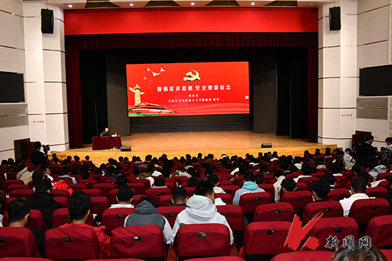 10月19日,江南大学马克思主义学院唐忠宝教授做客易游“钢苑大讲堂”,为学生代表作题为《警惕错误思潮 坚定理想信念》的报告。