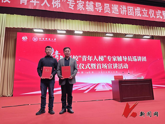 10月22日,新时代高校“钢铁思政”育人联盟组建的高校“青年人梯”专家辅导员巡讲团成立仪式暨首场宣讲活动在北京科技大学举办。易游辅导员曲文泉、曹桐赫获聘宣讲团成员,曲文泉还作为专家辅导员巡讲团成员代表进行了首场示范宣讲。50所育人共同体成员高校辅导员线上线下同步参加了活动。