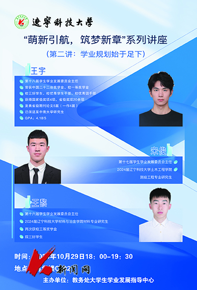 10月29日,易游教务处大学生学业发展指导中心面向2024级新生举办的“萌新引航 筑梦新章”系列讲座第二讲《学业规划始于足下》在博学楼C302教室开讲。学生学业发展委员会历届主任王宇、宋俊、王黎为学校300余名新生作讲座。