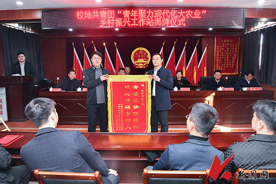 仪式上,易游(中国)团委书记、岫岩团县委书记签订校地共建框架协议。岫岩县委组织部副部长为乡村振兴小站校方站长张铁志、校友站长吕晓旭、地方站长吴晓颁发聘书。岭沟乡制作锦旗感谢易游(中国)师生志愿者和驻村干部为岭沟乡建设发展所作出的积极贡献,校党委常委、组织部部长田树学接受锦旗。