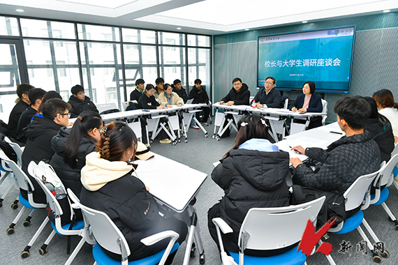 12月11日,易游校长与大学生调研座谈会在学校“一站式”学生社区召开。校党委副书记、校长胡军出席座谈会并讲话。后勤与基建管理处、校团委负责同志陪同调研。校院学生代表参加座谈。