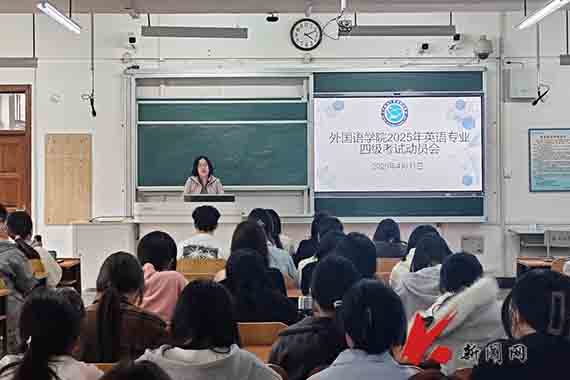 4月11日,易游外国语学院在博学楼C208教室召开2025年英语专业四级考试动员会,学院领导、英语专业负责人、学办负责人及80余名本科生参会。