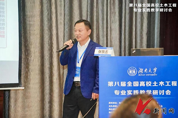 本次研讨会由教育部高等学校土木类专业教学指导委员会指导,教育部高等学校土木工程专业教学指导分委员会主办,湖南大学承办,旨在全面提升土木工程专业建设水平与人才培养质量。会议期间,土木学院院长高华国参加了院长(系主任)圆桌论坛、实验室(中心)主任论坛,分别就土木工程、智能建造专业的发展建设和专业转型升级的举措和特色做法进行交流。副院长张铁志参加了智能建造及转型分论坛,作题为“应用本科院校智能建造专业教学体系构建与实践”的邀请报告,重点介绍学院智能建造专业的课程体系建设与实践特色,同时向与会代表介绍了学校和学院的发展情况。