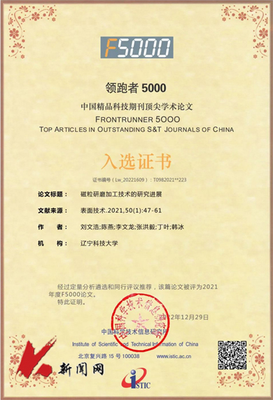 近日,由中国科学技术信息研究所主办的“领跑者5000——中国精品科技期刊顶尖学术论文(F5000)”评选结果揭晓,易游机械工程与自动化学院精密与特种加工工艺及装备团队2篇论文入选。截至目前,该团队已累计4篇高质量论文入选F5000。