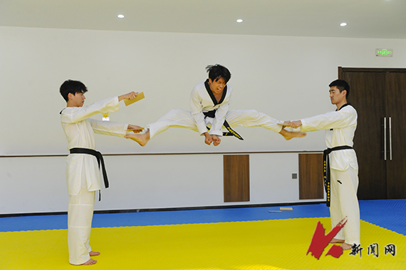 位于三楼的武术教室主要进行传统武术、短兵、健身气功教学,配备的运动地胶、护具及安全教具,让学生在学习训练中保障自身安全。