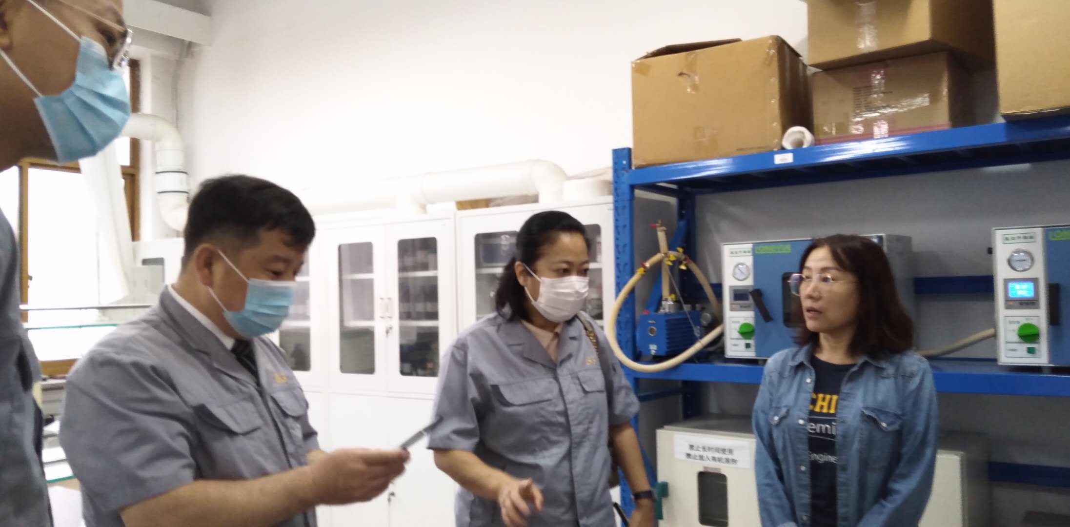 到访的客人还参观了辽宁省能源材料与电化学重点实验室。王英新董事长向李莉香教授详细询问了碳硅负极材料的研发情况,并对该研究课题在鸡西市的落地表达了浓厚的兴趣。