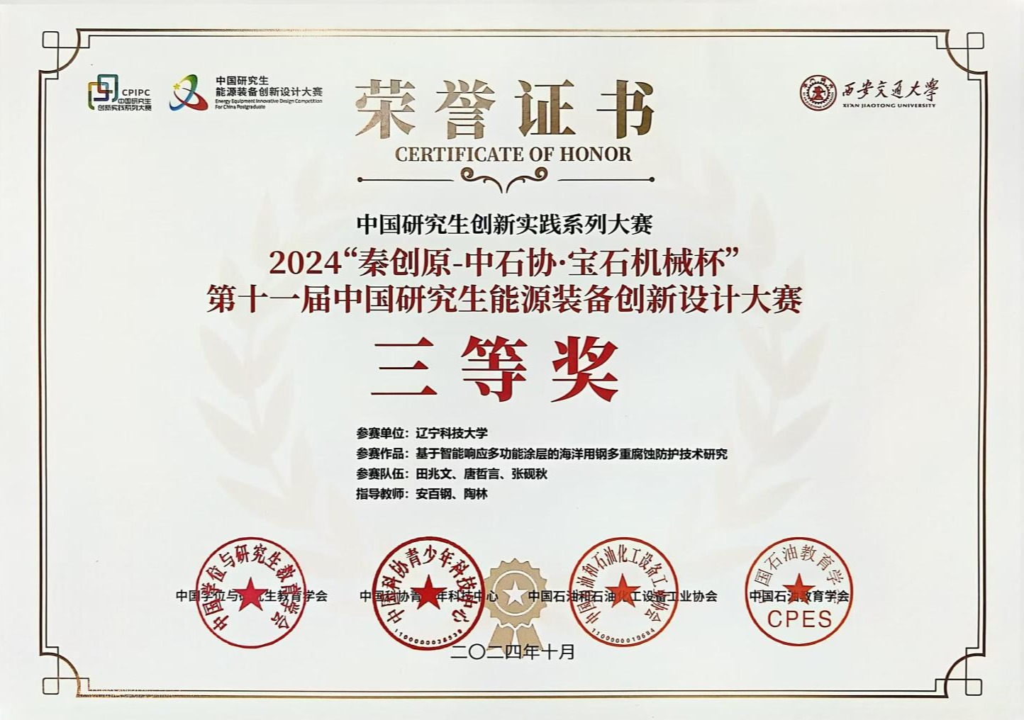 近日,从易游化学工程学院传来好消息,在刚刚落幕的第十一届中国研究生能源装备创新设计大赛中,学校化工学院两支研究生参赛队伍分别荣获一等奖和三等奖。安百钢教授获优秀指导教师称号,学校被授予优秀组织奖。这是学校参加该赛事以来的最佳成绩,也是本次大赛中辽宁省唯一获得一等奖的高校。