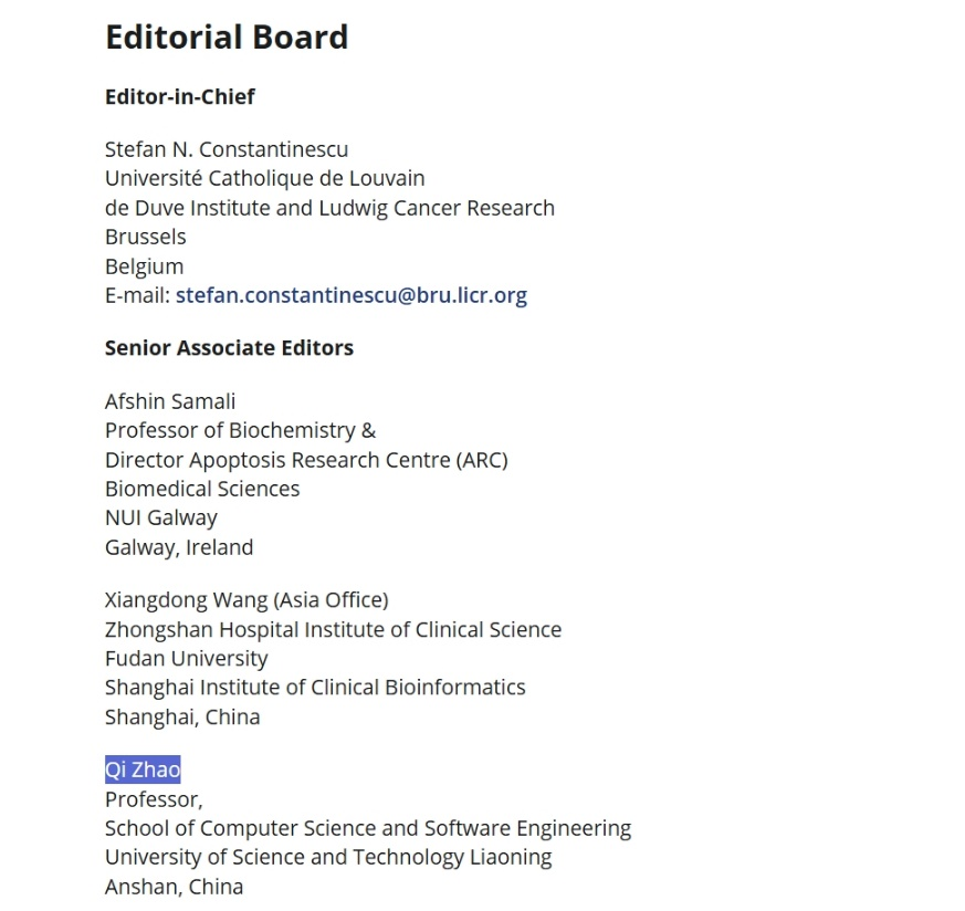 近日,易游计算机与软件工程学院赵琪教授收到比利时皇家医学科学院院士、罗马尼亚科学院院士、欧洲医学科学院联合会副会长、比利时鲁汶大学Stefan Constantinescu教授邀请,受邀担任威立出版集团旗下期刊Journal of Cellular and Molecular Medicine高级副主编(senior associate editor)。该期刊的高级副主编共有三人,另外两位分别是欧洲人文和自然科学院院士、复旦大学特聘教授王向东,爱尔兰国立高威大学资深教授Afshin Samali。