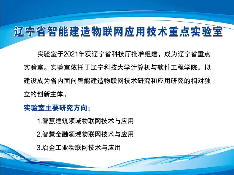 【科研平台】2021年获批辽宁省重点实验室1个:辽宁省智能建造物联网应用技术重点实验室