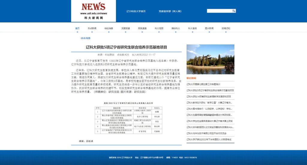 2022年辽宁省研究生联合培养示范基地——辽宁天地科技发展有限公司研究生联合培养基地
