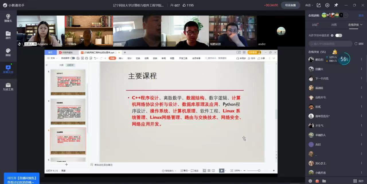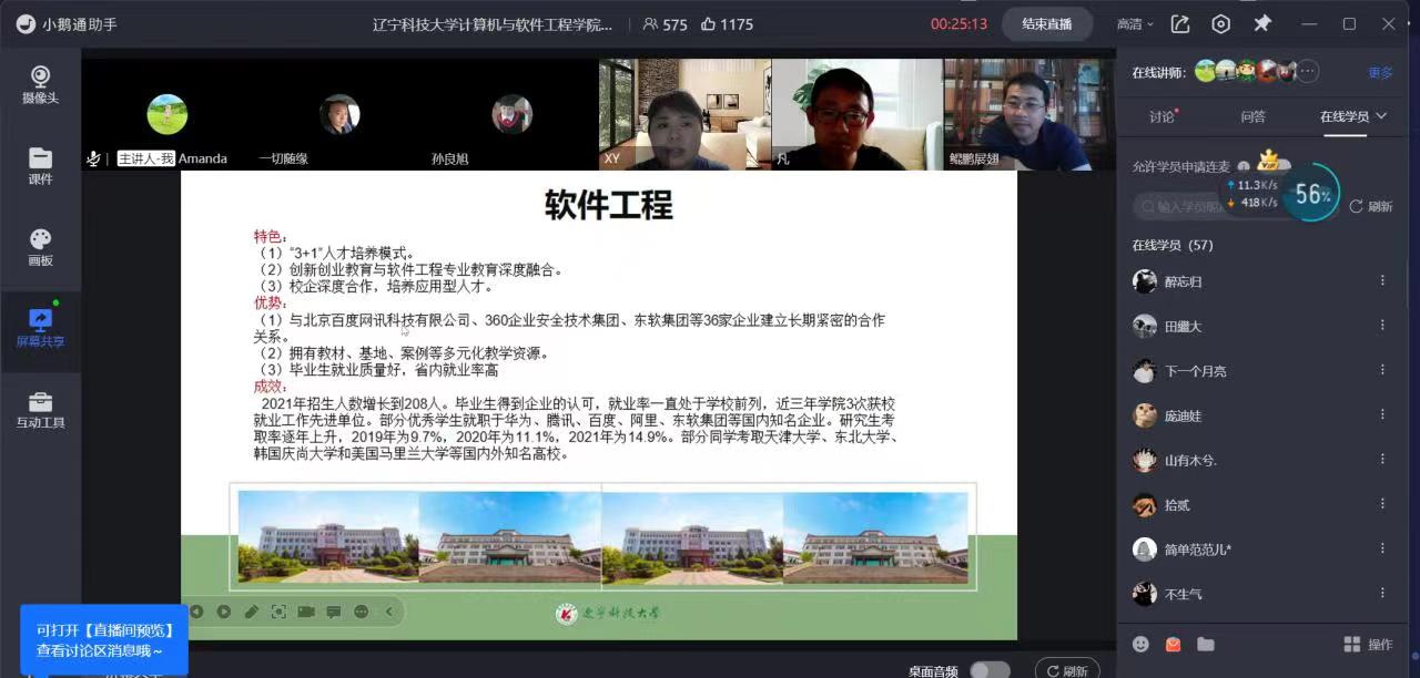 为了让考生更加直观地了解学校特色和学科发展,切实提高本科生源质量,计算机与软件工程学院充分利用高考至志愿填报截止这段关键期、黄金期,做好招生宣传工作。6月25日晚,计算机学院线上召开招生宣讲会,由学办主任隋丽玲主持,学院党委副书记李春生、各系主任、校企合作单位中软国际教育科技集团陈伟俊总监依次进行宣讲。本次宣讲会重点面向学院18个生源基地高中,吸引了740名考生及家长观看。