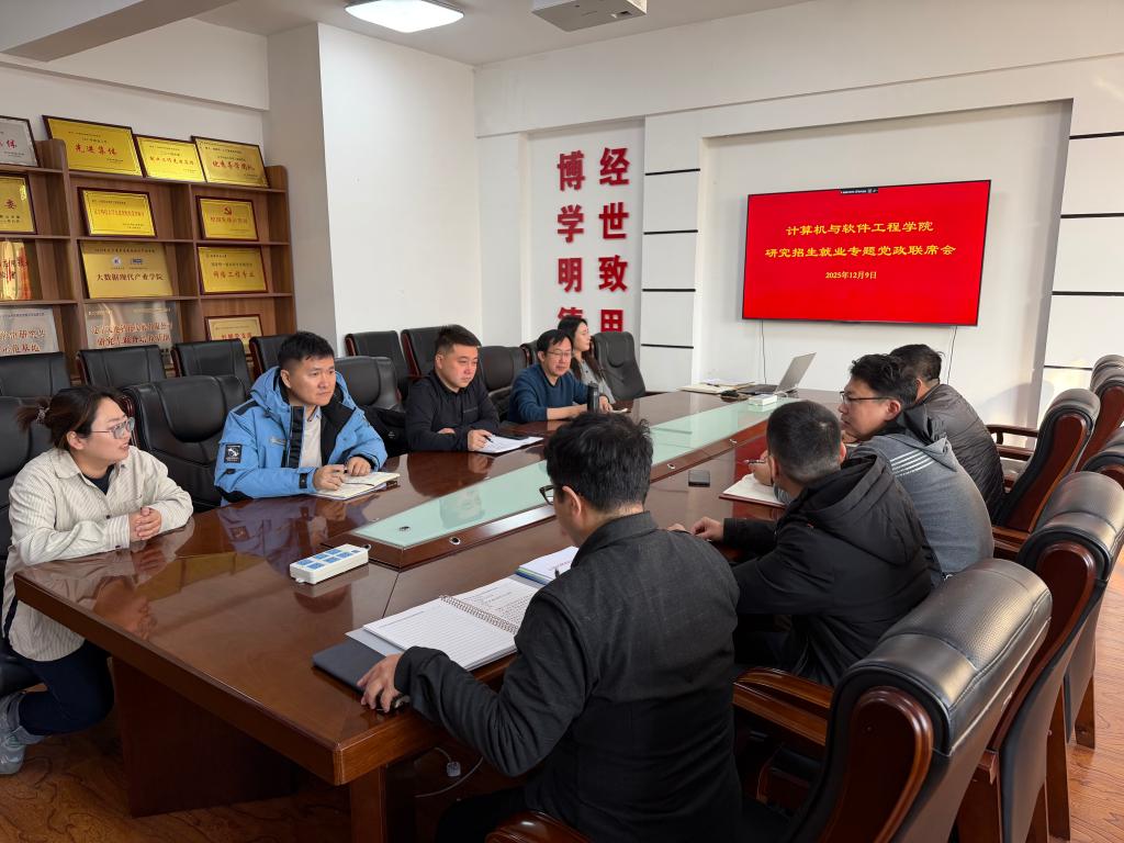 为精准对接人才培养与企业用人需求,稳步推进招生就业工作提质增效,12月9日,计算机与软件工程学院在博识楼B327会议室召开招生就业专题会议。会议由学院院长赵骥主持,陶润城、由济恺、艾青、陶冶等学院领导及相关教师代表列席参会,共同为学院招生就业工作谋思路、定举措。