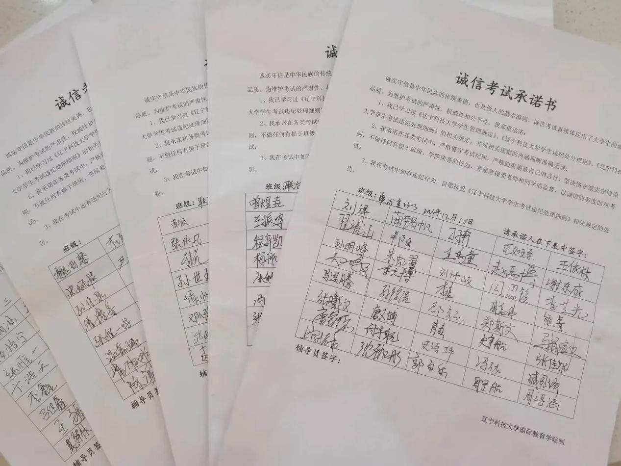 学院积极通过线上线下不同渠道宣传诚信考试教育、多措并举,加强考风建设。2023年12月到2024年1月期间,辅导员面向学院联冶金专业全体学生多次召开线下诚信考试主题教育班会。会上为同学们解读了《易游学生考试违纪处理细则(试行)》,并向同学们强调了考试注意事项及违纪、作弊行为的严重后果。最后向同学们宣读了《诚信考试承诺书》,学院联冶金专业学生全体签署承诺书。此外,还通过在微信群发布诚信考试、积极备考提示等方式,利用网络媒介落实学院考风考纪建设工作。