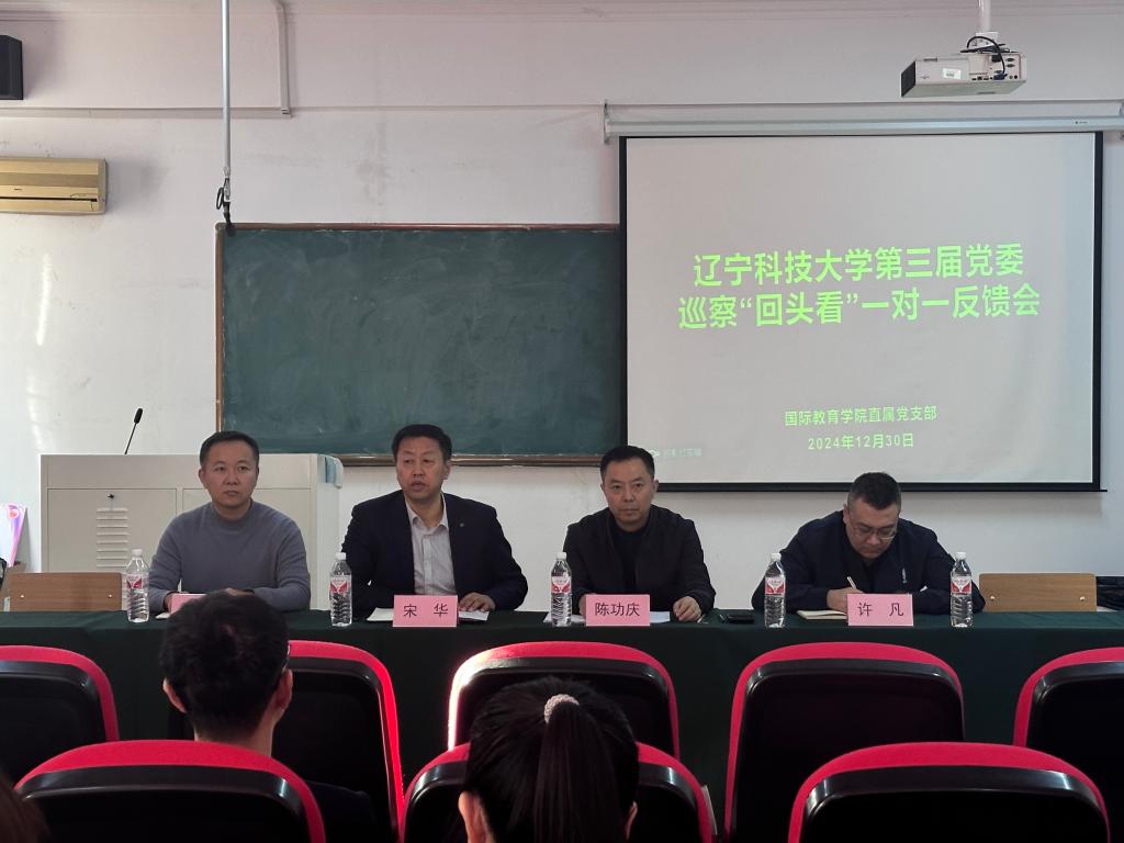 根据学校党委巡察工作领导小组的部署,2024年12月30日,党委巡察“回头看”巡察组向国际教育学院直属党支部反馈了巡察情况。宋华同志作表态发言。宋华主持会议。