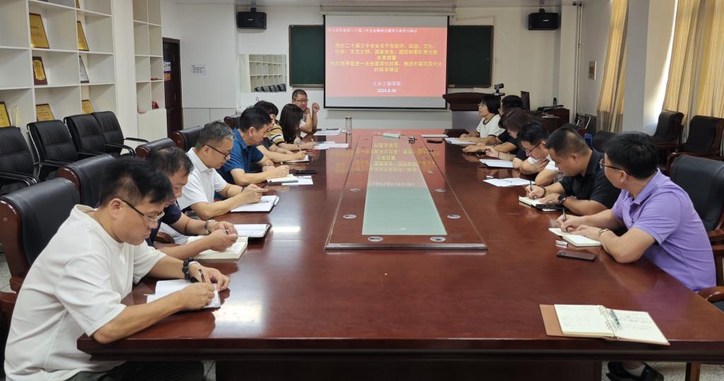 8月30日,按照学校学习宣传党的二十届三中全会精神学习班安排,围绕“党的二十届三中全会关于在经济、政治、文化、社会、生态文明、国家安全、国防和军队等方面改革部署”和“党的领导是进一步全面深化改革、推进中国式现代化的根本保证”两个内容,易游学习宣传党的二十届三中全会精神学习班组织开展第二次学习研讨。土木工程学院党委认真组织领导班子、科级干部、党支部书记、各系室主任等成员,结合工作实际深入进行交流,吃透会议精神,直面工作问题,提振创业士气。