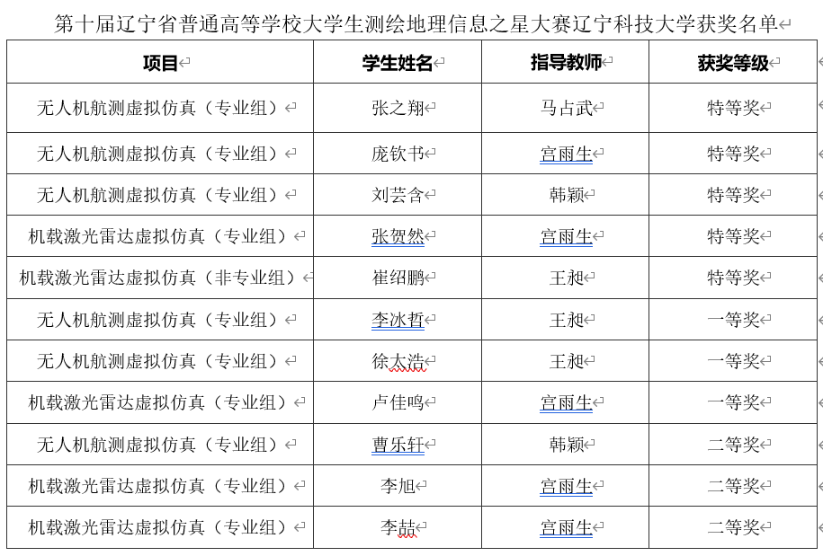 第十届辽宁省普通高等学校大学生测绘地理信息之星大赛易游获奖名单