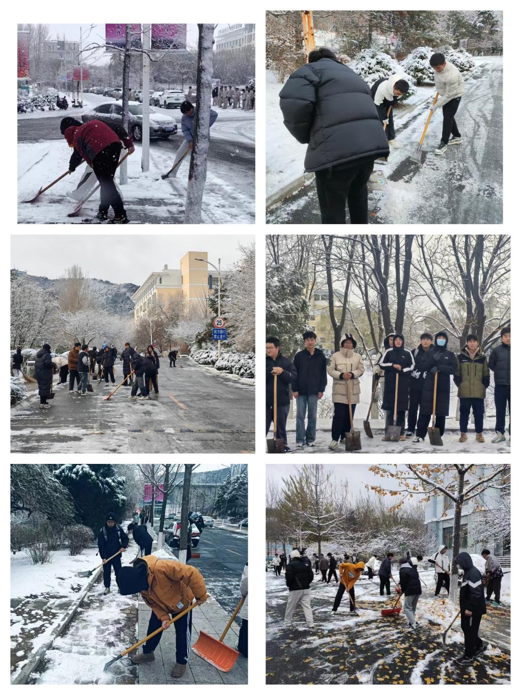 学院提前规划扫雪路线,划分责任区域,并准备好扫雪工具。同学们积极响应学院号召,冒着严寒,分工明确,配合默契,经过志愿者们的辛勤努力,校园分担区主要道路积雪被清理干净,校园环境焕然一新。