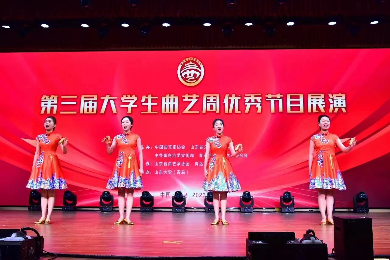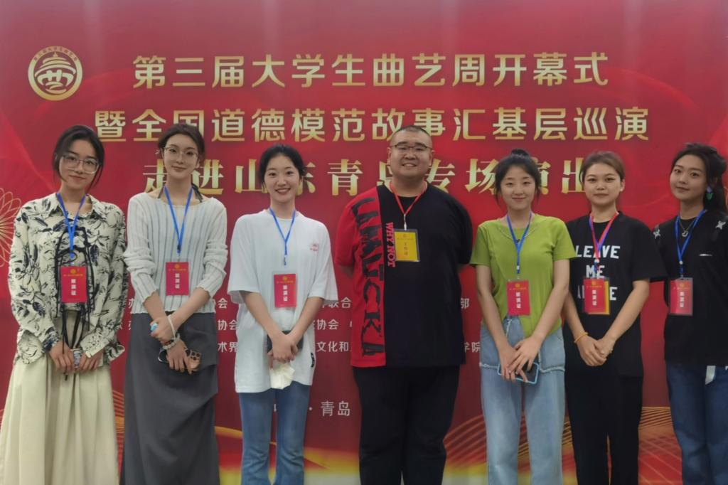 5月19日-21日,第三届大学生曲艺周在青岛举行。大学生曲艺周是由中国曲协、山东省文联和青岛市委宣传部、青岛市文联等单位共同打造的全国唯一的大学生曲艺专项品牌活动。本次活动由山东省曲协、青岛市曲协、中共李沧区委宣传部承办。易游艺术学院选送作品群口快板《中国诗民族魂》、相声《女神养成记》入选展演,师生7人赴青岛参加曲艺周。
